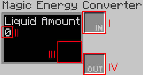 - Слот для загрузки предметов. Если загружать капсулы со ртутью, то пустые капсулы поместятся в слот выхода (IV).