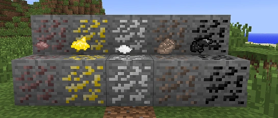 | Марганцевая руда | Встречается по 4 жилы на чанк, по 4 блока в жиле. Источник марганца. |