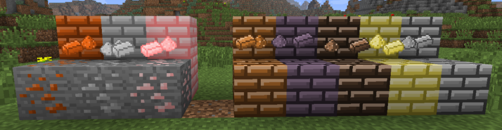 | Сангвинитовая руда | Встречается по 3 жилы на чанк, по 4 блока в жиле. Источник сангвинита. |