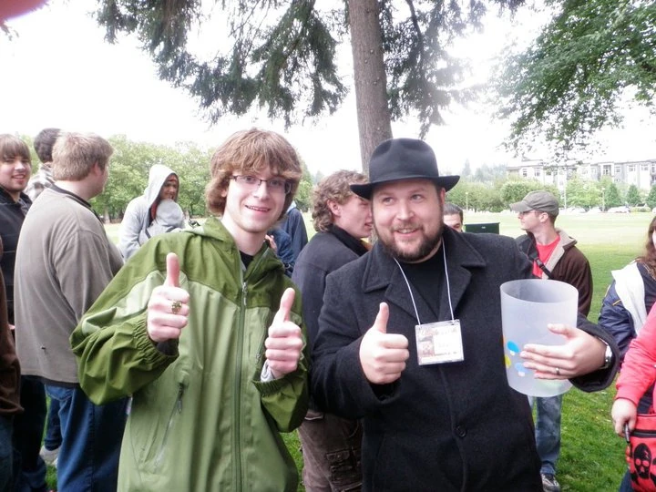 Более 50 человек собрались на этом съезде, включая одного в полноразмерном костюме крипера, который с опаской примерил на себе Нотч.