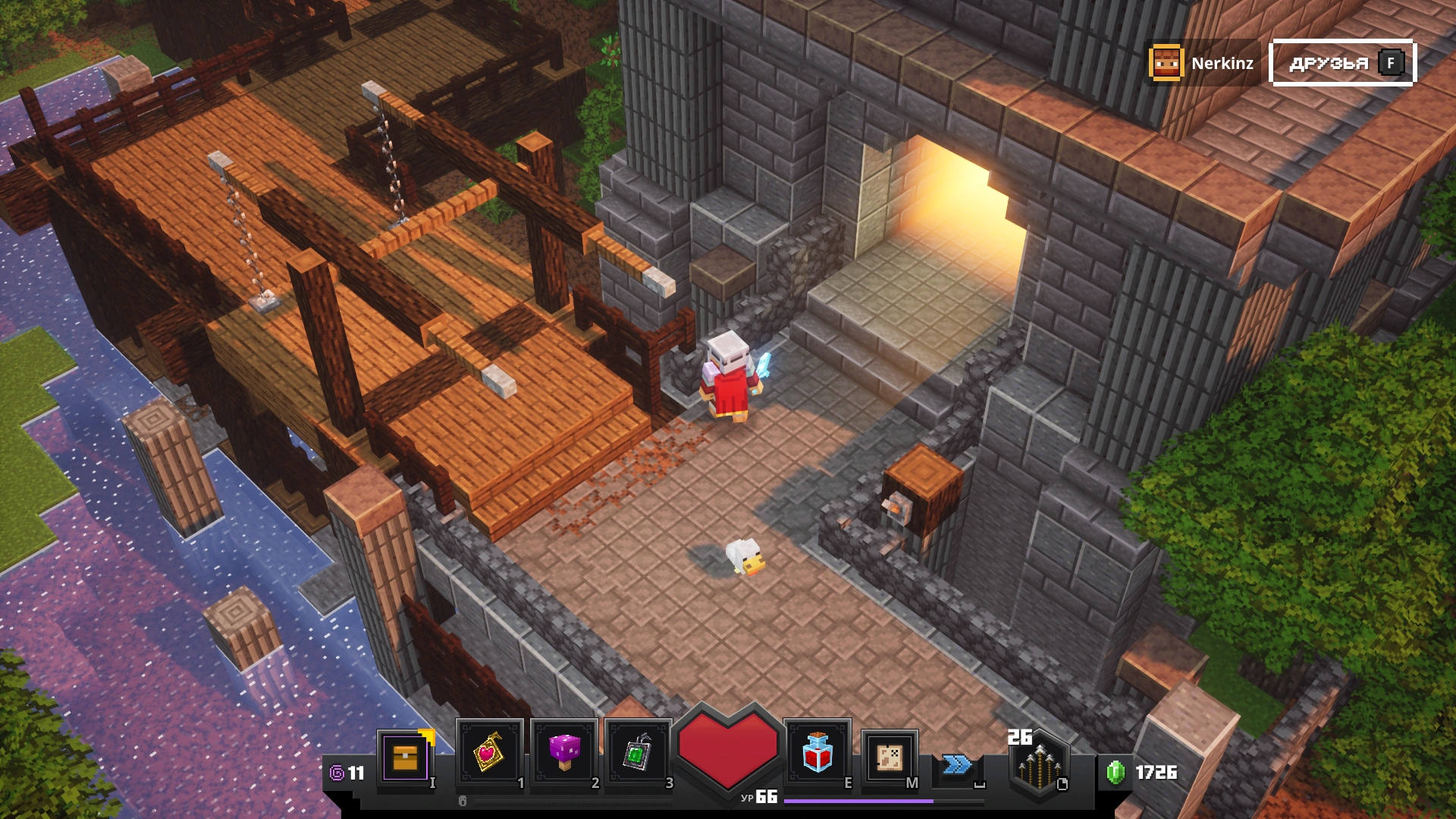 | Деревенский торговец | Лес криперов | 2-6 | Изумруды | Продает предметы (оружие, броня, артефакты) |