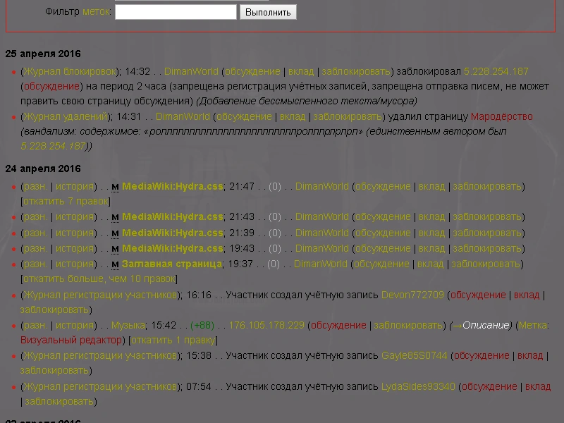 - Если вашу конструктивную правку не даёт сохранить фильтр злоупотреблений, учитывайте то, что для отдельных участников фильтры нельзя отключить. Тем не менее, администратор может сделать эту правку за вас. Большинство фильтров работают только для незарегистрированных или новых участников, поэтому после совершения некоторого количества правок эти фильтры перестанут препятствовать редактированию.