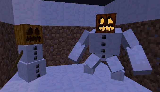 Снежный Мутант — как и обычный снежный голем будут атаковать враждебных мобов и игроков. Однако, отличие не только в том, как он выглядит, но ещё и в его атаке. Если обычный снежный голем атакует снежками (не носящими урона), то Мутант атакует глыбами льда, наносящими урон в 6 (). Также если рядом есть блоки воды, превращает их в лёд, а на некоторых блоках оставляет снег.