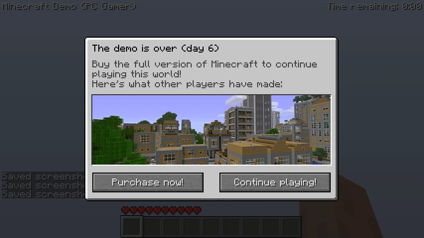 На данный момент выпущена новая демо-версия игры Minecraft. Она была добавлена в версии 1.3 Release (не путать с 1.3 Beta)