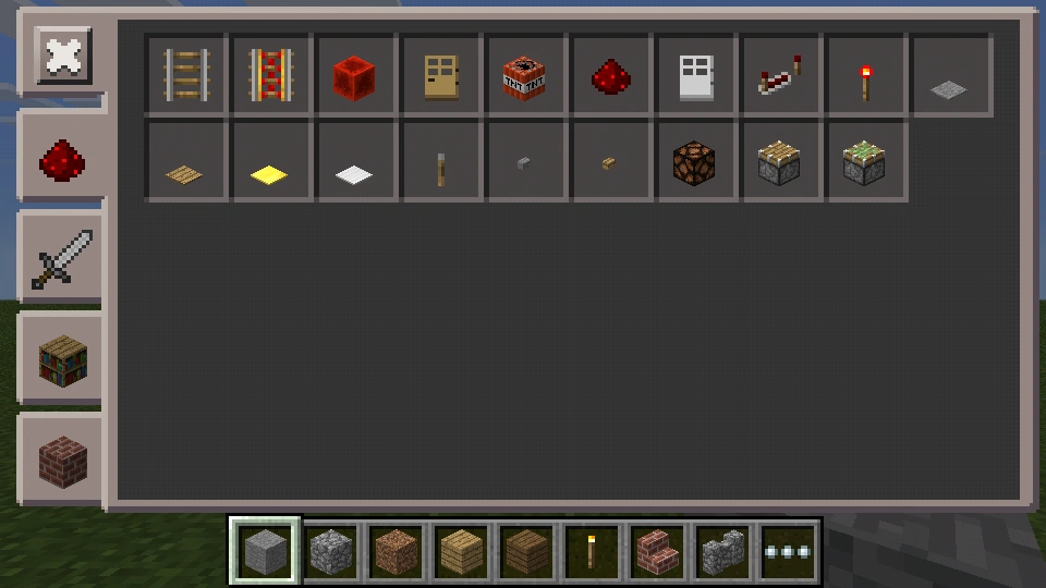 - В режиме «Творчество» игры для Pocket Power в инвентаре есть специальная вкладка, которая позволит вам получить быстрый доступ к предметам, связанным с красным камнем.