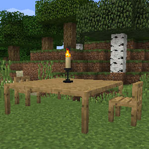 | Палка + Дубовые доски или Еловые доски или Акациевые доски или Берёзовые доски или Доски из железного дерева или Оливковые доски или Джунглевые доски или Доски из тёмного дуба |