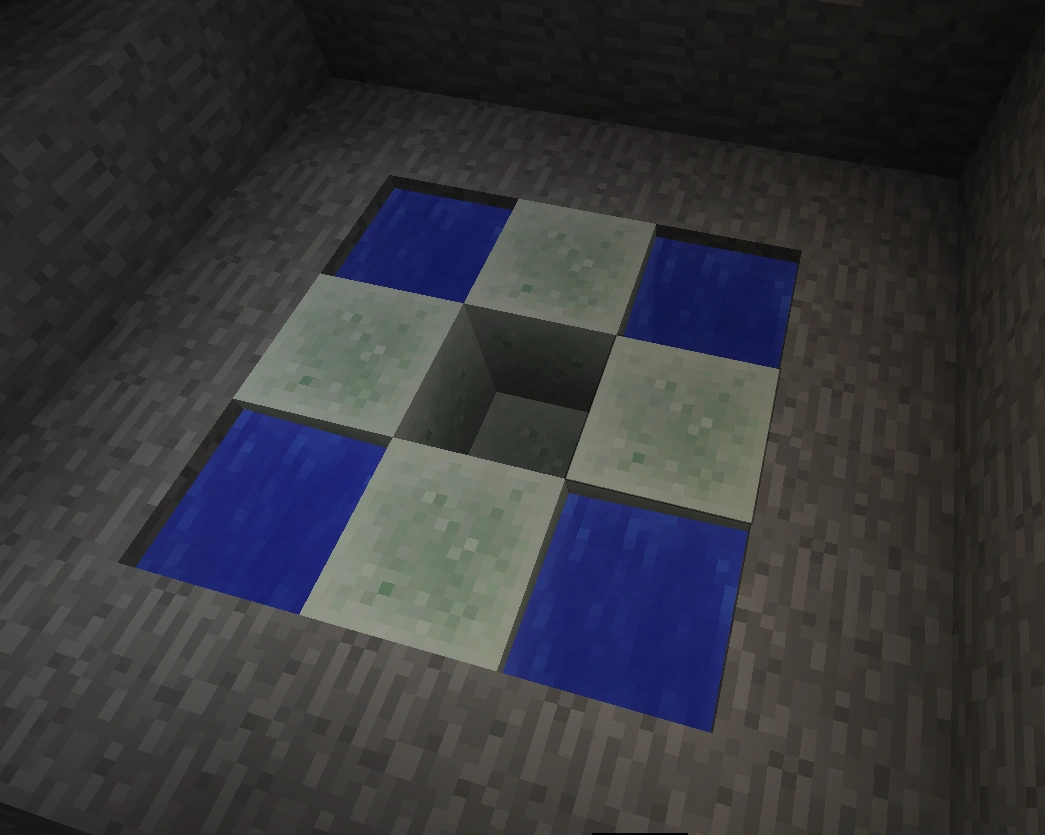 На нижний уровень по центру ставится блок соли - это будет основа. Затем по 4-м сторонам от него, но уровнем выше ставятся остальные 4 блока соли. Таким образом собирается своеобразная коробка, в которой и будут расти кристаллы. На этом же уровне по углам наливается вода. Теперь ферму можно считать законченной, однако кристаллы не будут расти под дождём или под прямыми солнечными лучами. Поэтому вам остаётся только укрыть конструкцию от осадков и света. Это можно сделать просто соорудив ферму в пещере или под искусственным потолком, для чего будет вполне достаточно разместить над местом роста кристаллов на любой высоте один непрозрачный блок.