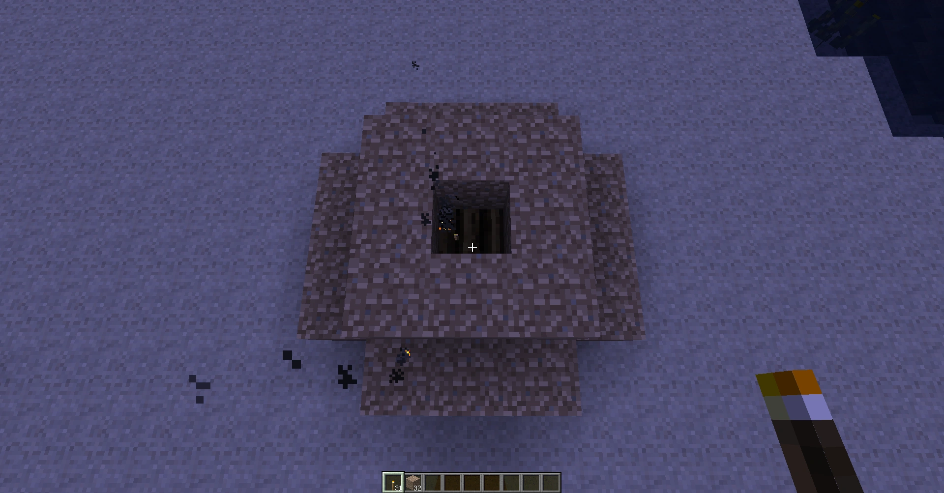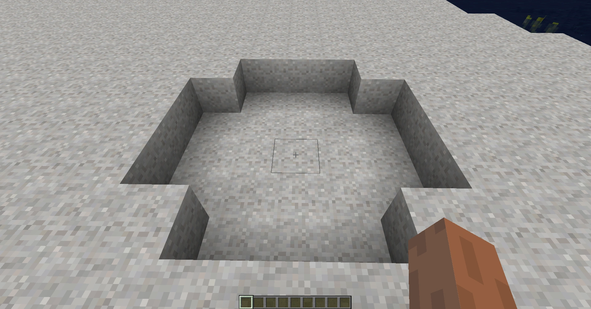 Копаем яму глубиной в один блок, так, как показано на скриншоте.
