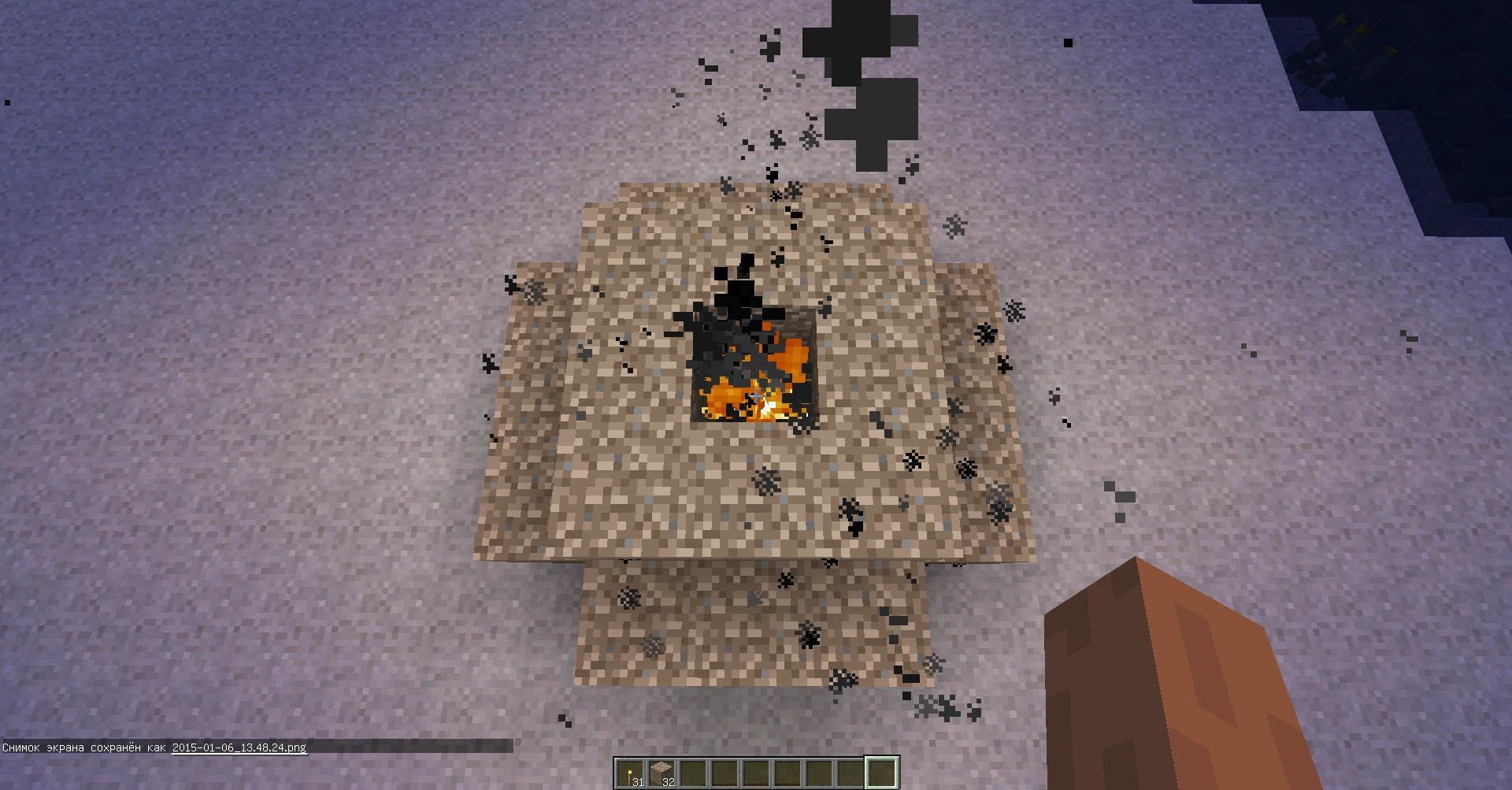 - Максимальный размер угольной ямы до 25 блоков в ширину и 13 блоков в высоту. При сгорании угольной ямы большого размера идёт большая нагрузка на компьютер, поэтому на сервере лучше не делать большие кладки.