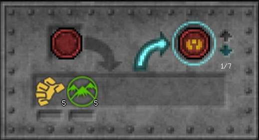 В окне тауматория предусмотрен только один слот (прямоугольный, слева), в который тауматург может помещать основной ингредиент для алхимической операции. В правом слоте (круглый) подсвечивается один из вариантов предметов, которые могут быть насыщены эссенцией. Снизу указываются эссенции и их количество, которые необходимы для проведения реакции.
