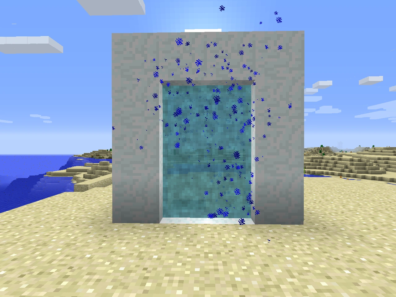 Чтобы построить портал, вам нужно сделать любую лопату, и с помощью её нужно добить снега, из которых можно уже сделать блоки. Строим его как в портал ад, но только чтобы зажечь, нам нужен ледяной скипетр, который из-за недоработки модификации никак нельзя добить или найти. Но если прибегнуть к читам, то можно прописать себе этот скипетр, и нажать на любой нижний блок снега.