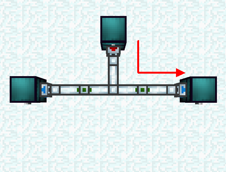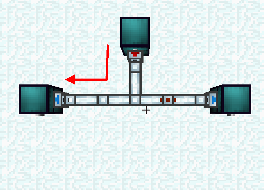 Предмет, попавший в трубу, направляется в сторону наиболее ближнего контейнера. Если расстояние направлений одинаковое, то приоритетность будет установлена за счёт сторон света, в порядке убывания: Верх — Север — Юг — Запад — Восток — Низ.