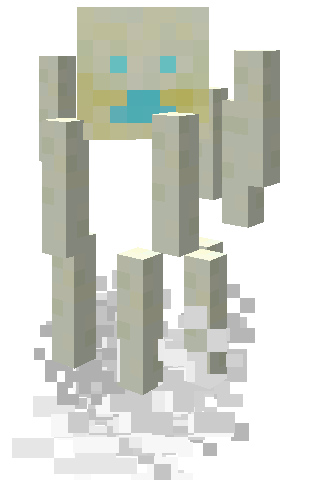 Появляются в таких биомах как пустыни и саванны, группами по 1-4. Встречаются реже, чем большинство других мобов. | Сильно напоминает ифрита. Вместо дыма, блитц производит белый дым. Издает звуки короткого дыхания и ветра. В бездействии он бродит по земле. Когда он видит игрока, он начинает летать и атаковать. При атаке блитц стреляет «блитц болтами» — снарядами, которые наносят урон и могут применять эффект тошнота III течении 5 секунд. Имеет здоровье: 20 ( | ||