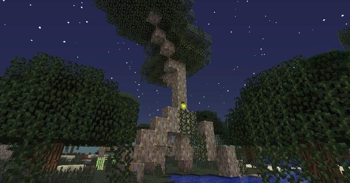 Эти деревья охватывают почти все биомы Сумеречного леса, заполонив собой почти всю территорию. Они вырастают до 20-24 блоков (1 к 24, что вырастет до 25 блоков в высоту), а потом начинают формироваться большие ветви с плотной шапкой листвы, по которой можно ходить. Так как раскидистые деревья часто растут рядом, то по листве можно прогуляться на сотни блоков любую сторону. На каждом таком дереве всегда есть один светлячок, и часто он находится прямо около земли. |