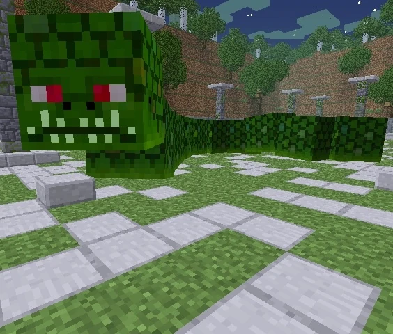 Змеевидный босс зелёного цвета. Поведение как у змей: ползает, при столкновении наносит урон. Найти его можно в грибном лесу на арене Наги. Этот босс в Сумеречном лесу является одним из самых лёгких по сравнению с остальными. Как и Дракон Края уничтожает блоки на пути и они выпадают. |