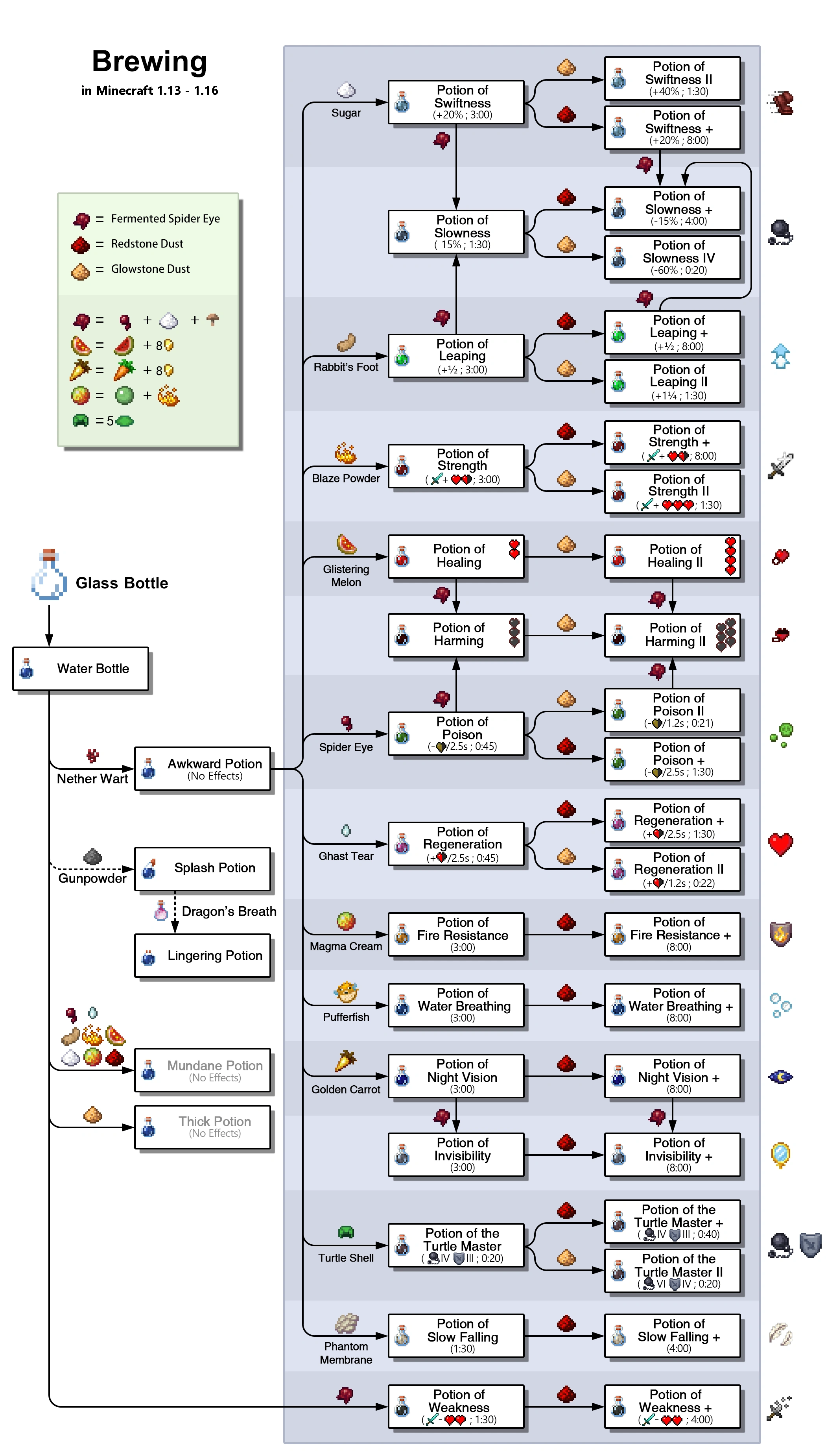 | Редстоун | Збільшує тривалість ефекту зілля, але робить його слабшим.