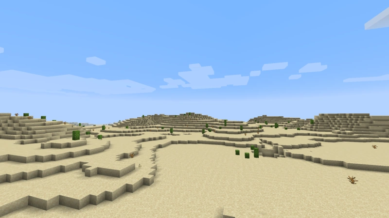 Горбиста пустеля, на відміну від звичайної, має більш гористий рельєф. Пагорби в цьому біомі вище, ніж в інших горбистих біомах, і складаються в основному з піску і пісковика. Виживати в горбистій пустелі важче, ніж у звичайній, оскільки тут генеруються тільки копалини і колодязі; храми в цьому біомі є тільки в Bedrock Edition. Пісок на пагорбах може не осісти після генерації карти, тому гравець ризикує впасти з пагорба. На відміну від інших типів пустелі, пустельні озера рідше зустрічається і мають більш гористий рельєф, ніж у звичайній пустелі, але не настільки, як в горбистій. Також в цьомубіомі є водні озера. У пустельних озерах генеруються тільки копалини і колодязі.