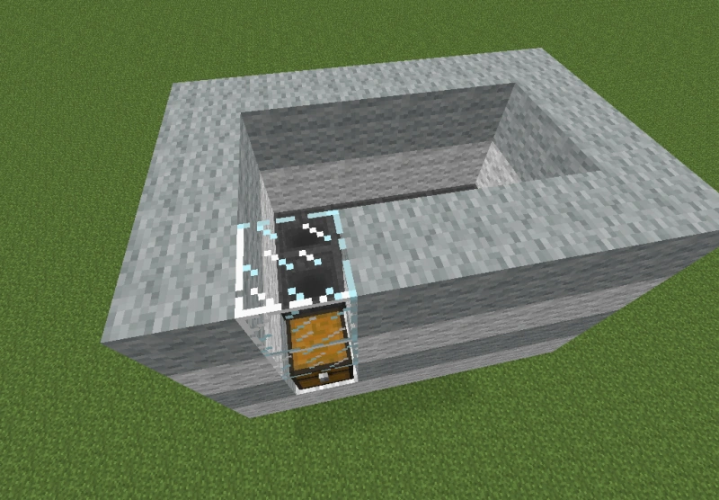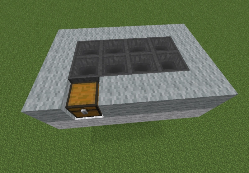 Для побудови необхідно встановити викидач соплом вгору, потім встановити над ним роздавальник соплом в будь-яку зі сторін. Після цього потрібно підключити воронку до викидача з того боку, в яку дивиться сопло роздавальника. Решта воронки підключаються до вирви підключеної до викидача так, щоб утворився квадрат з воронок, який в свою чергу огороджується двома рядами будь-яких блоків.