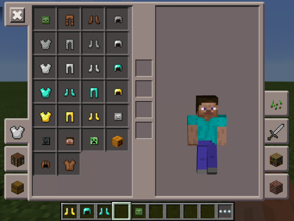 | Helmet | Leather or Gold Ingot or Iron Ingot or Diamond |