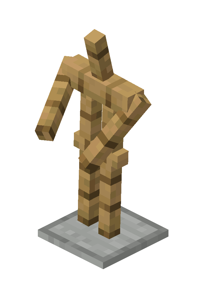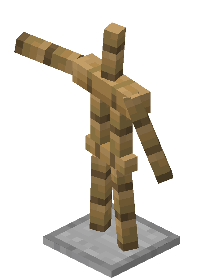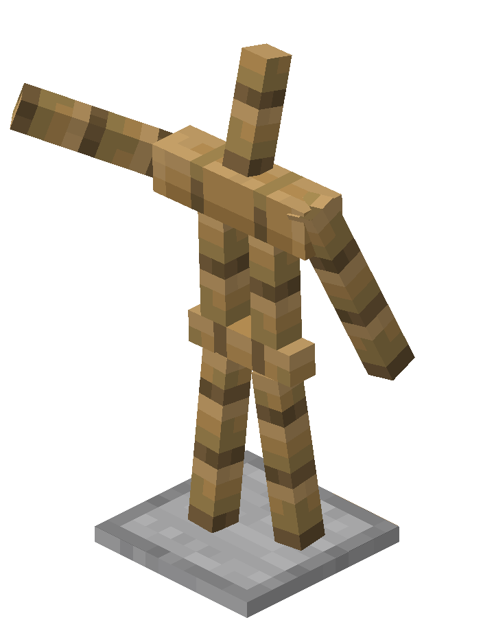 - ShowArms: 1 or 0 (true/false) - if true, ArmorStand displays full wooden arms. If false, also place and replace interactions with the hand item slot are disabled.