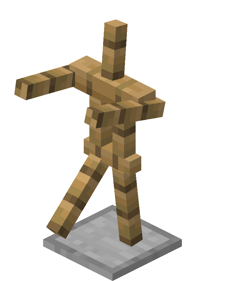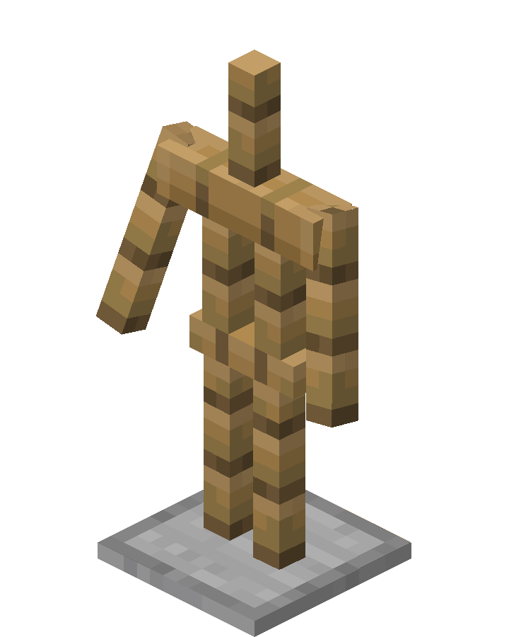 - ShowArms: 1 or 0 (true/false) - if true, ArmorStand displays full wooden arms. If false, also place and replace interactions with the hand item slot are disabled.