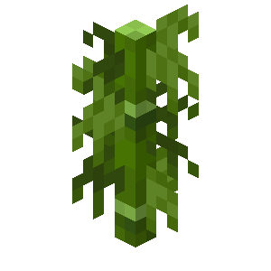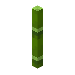 The appearance of bamboo changes as it grows. When first placed, it takes the form of a small shoot. When it grows one block taller it grows to 2 pixels in length and width and the top block has leaves coming off it. At 3 blocks, the top 2 blocks have leaves and at 4 blocks the bamboo expands to 3×3 pixels. At 5 blocks tall, the top 3 blocks have leaves on them. As the bamboo grows, the leaves move up and stay at the top 3 blocks. Destroying a block of bamboo does not change the appearance of the blocks below it. Bamboo is oriented at a random position in the block that it is in. Bamboo, grass, sweet berry bushes, and ferns are the only plants that change their hit boxes as they grow.