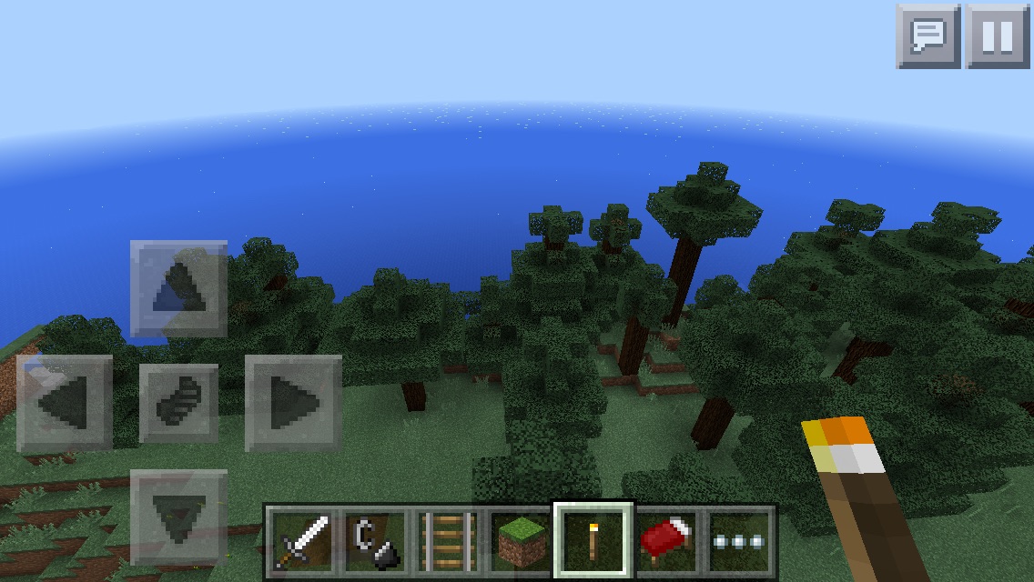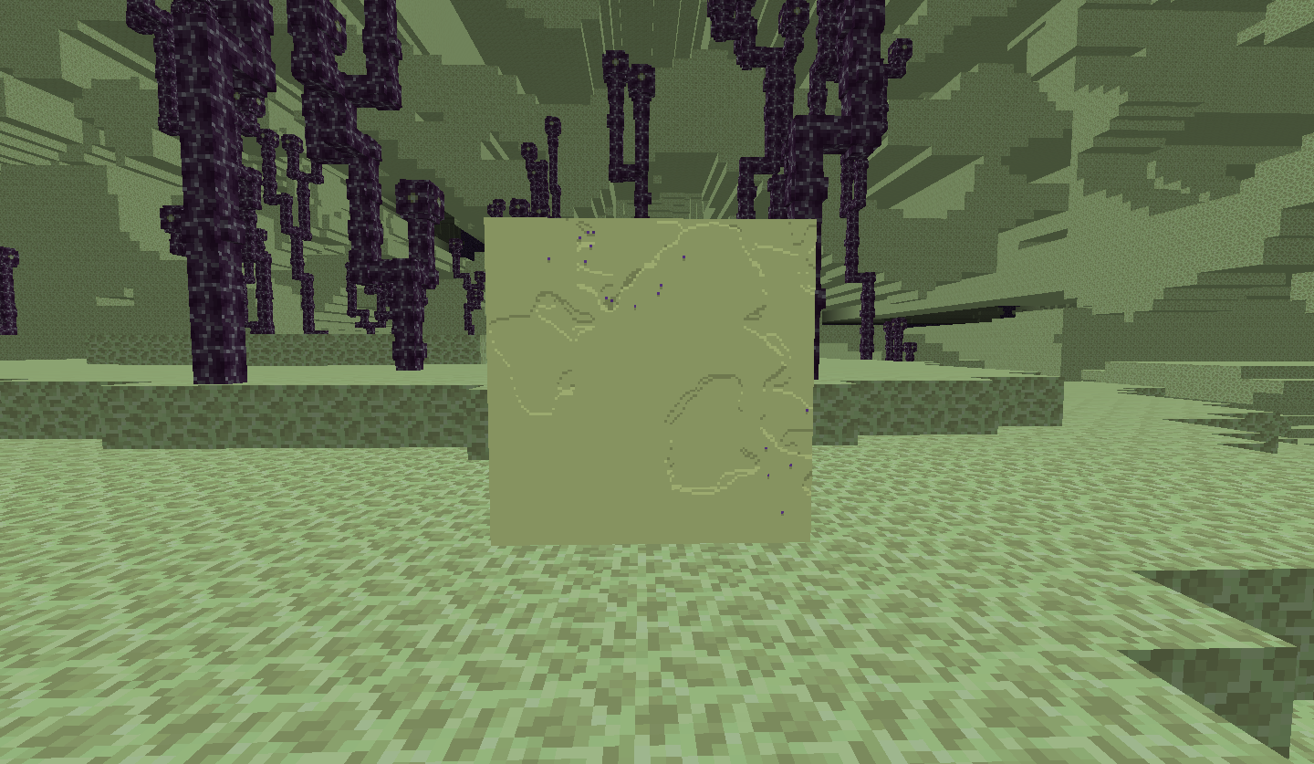 In both zones, any area beneath sea level, excluding regular caves, will be flooded with water. The Far Lands will generate biomes, but most biomes will be indistinguishable except by the color of grass. Desert biomes will be covered in sand and snow-covered biomes will be covered with snow, excluding the very top of the map due to the height build limit. Trees will generate somewhat normally, but can only be found in the upper areas of the map due to the need for grass. However, if the player opens the debug screen, it will always claim that the biome is a forest.