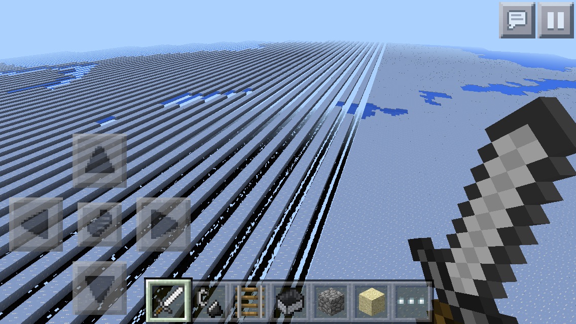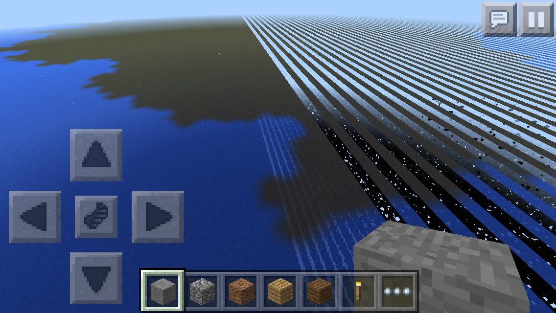 The Edge Far Lands' average block composition: 36% stone, 25% air, 23% water, 10% dirt/grass block, 2% bedrock, and 4% others. (Based on a 14×14 chunk selection)