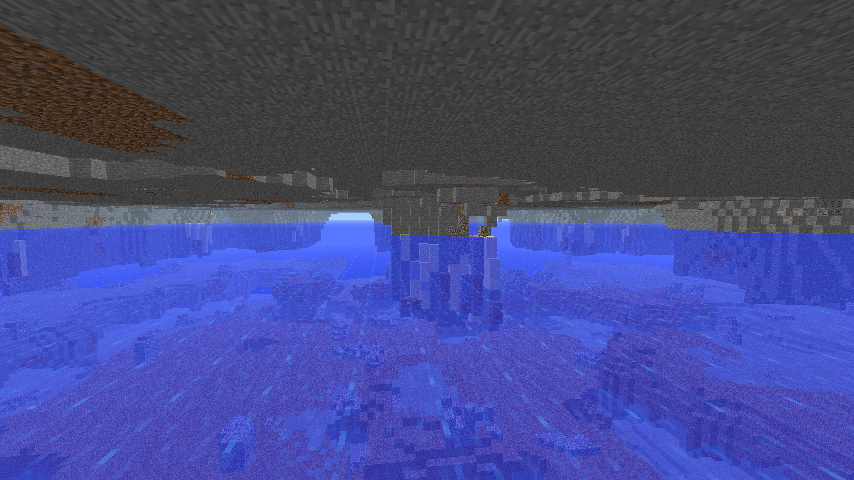 Ores can be found up to their respective maximum heights just like in the normal world. Unfortunately, due to the flooding, everything except for coal is difficult, if not impossible, to acquire. In the solid areas of the Far Lands, normal caves will generate but will be limited and small. Along with the caves, dungeons (extremely rare) and lakes can be found in solid areas. Water and lava springs can be found out in the open and in caves.