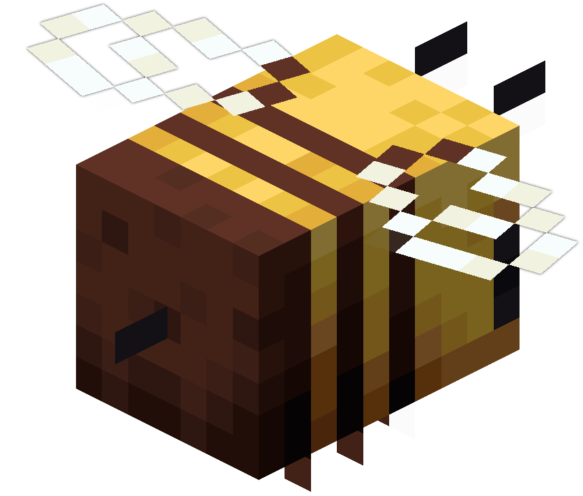 Bees are neutral mobs that live in bee nests and beehives. If provoked, bees attack in a swarm to sting the player and inflict poison.