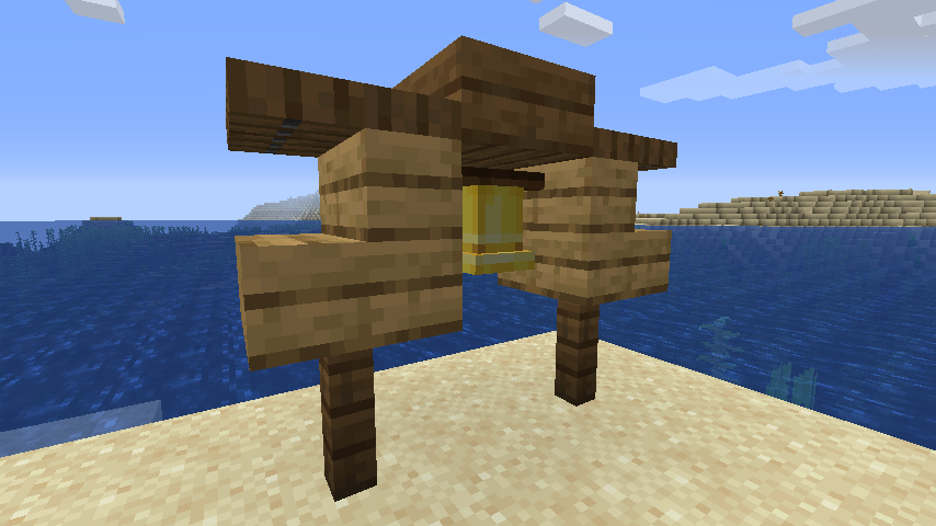 Bells can be right-clicked to produce a sound and will also produce a “swaying” animation, bells can also be anchored to the side of blocks, ceilings, and floors.