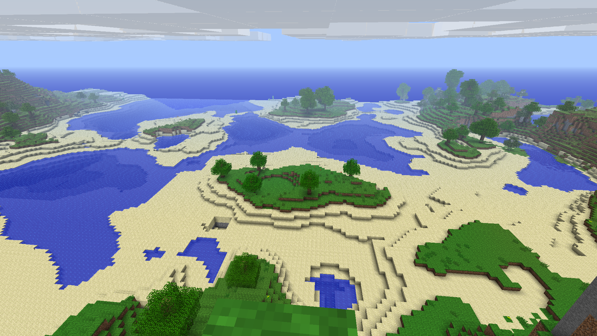 | Beaches | Beaches were usually generated next to oceans or lakes and covered all nearby low elevated shorelines. They could be found in any biome. They came in two varieties: sand and gravel. Sandstone was located below sand in sand beaches, and occasional patches of clay could also be found.
