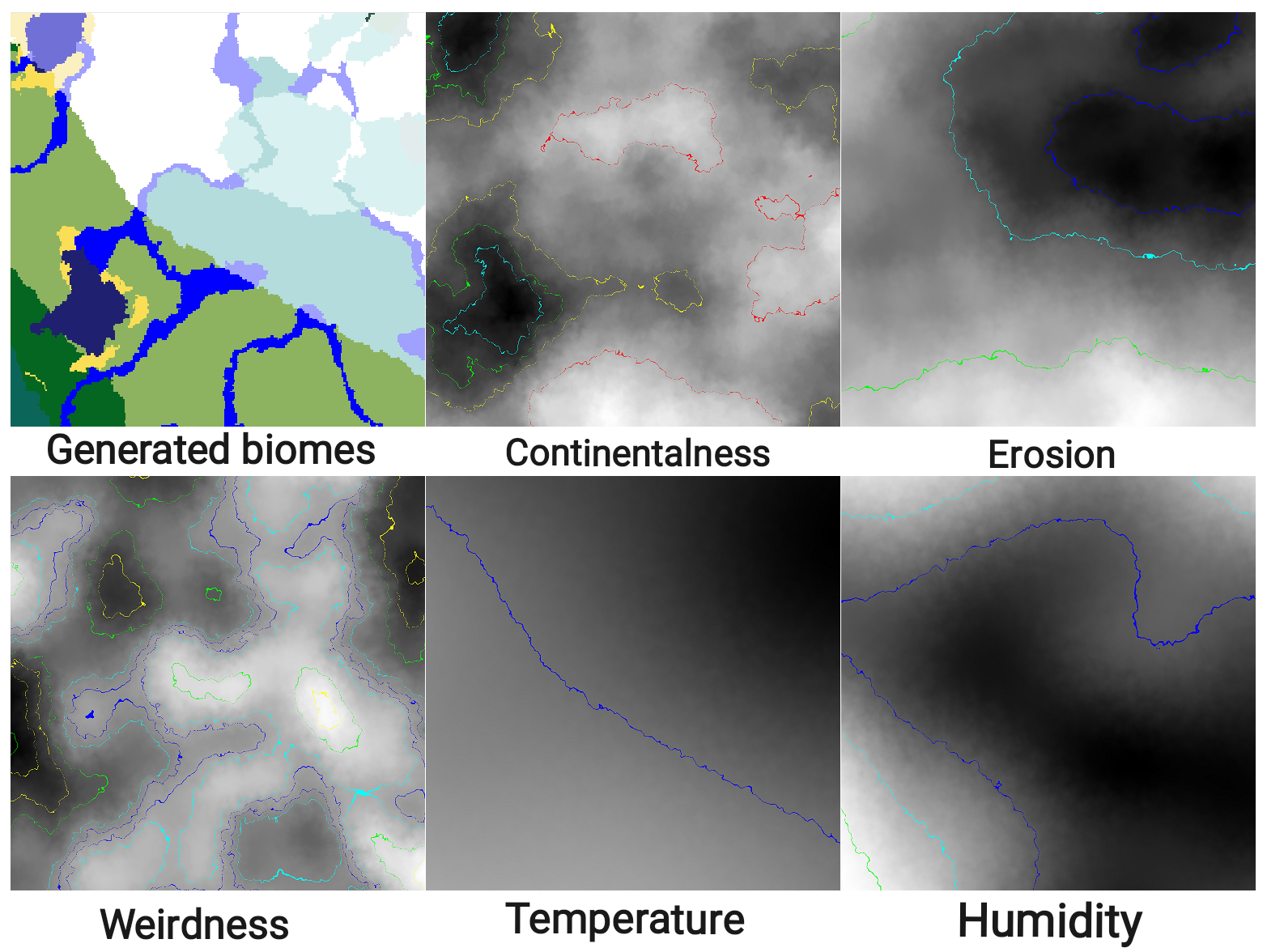 A biome is a region in a world with distinct geographical features, flora, temperatures, humidities, and sky, water, fog, grass and foliage colors. Biomes separate every generated world into different environments, such as forests, deserts and taigas.