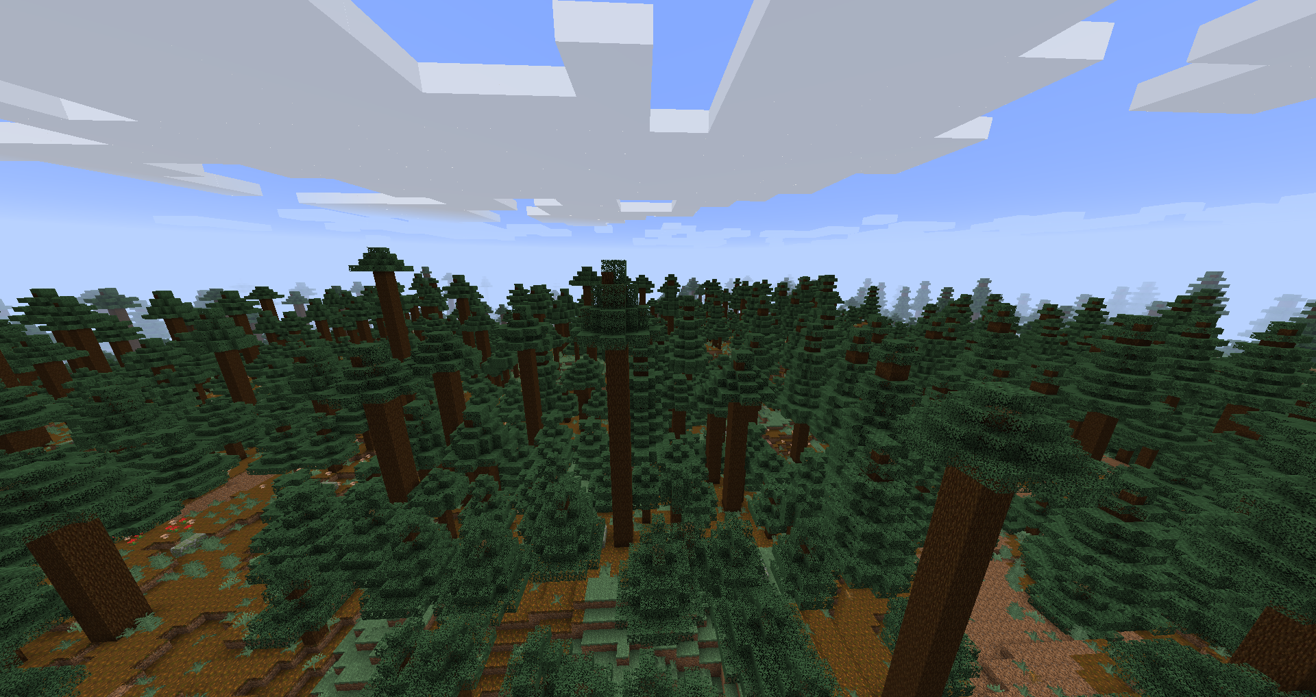 Comparison of giant tree taiga and giant spruce taiga biomes. Note how the giant spruce trees are much thicker.