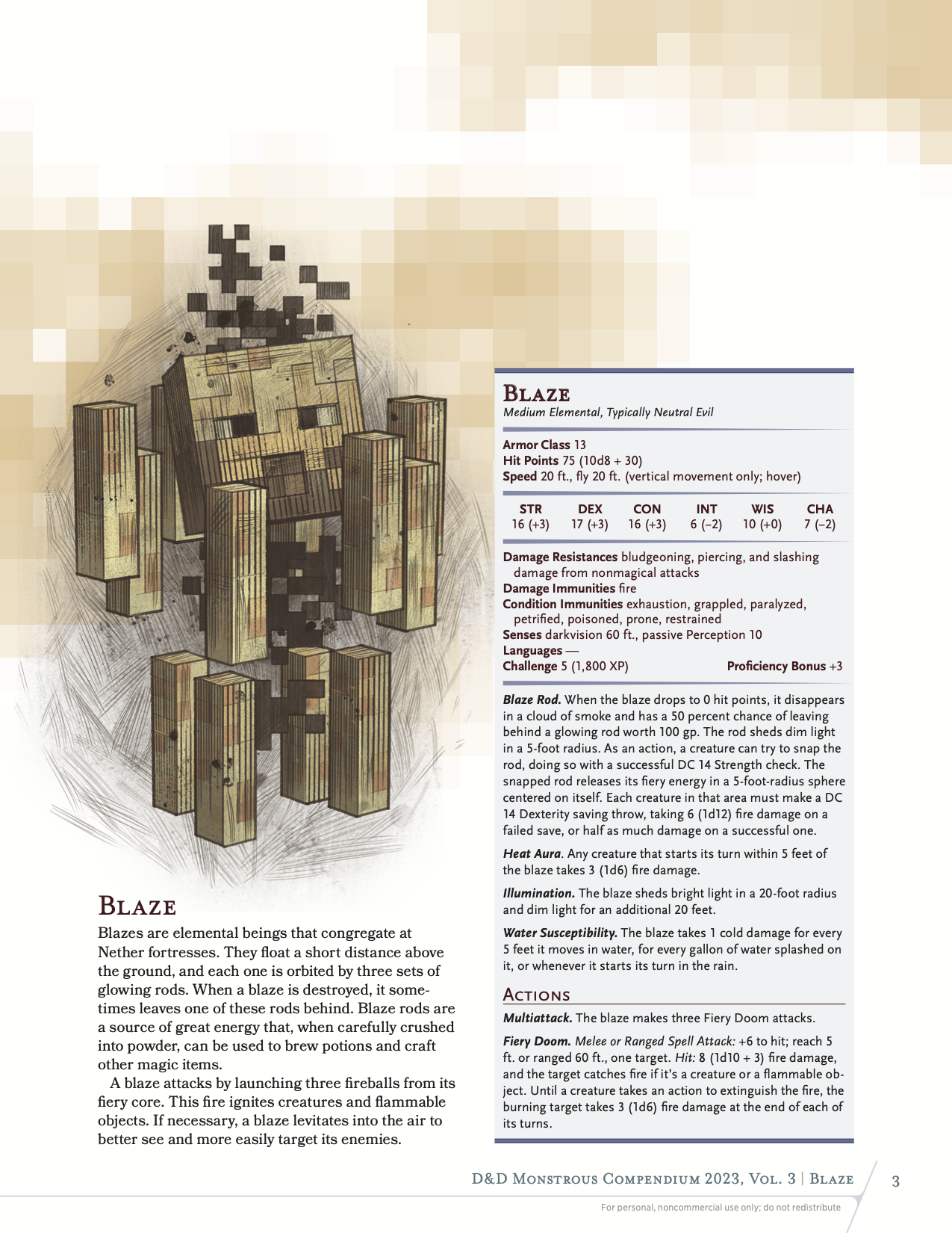 Official blaze statistics for D&D.