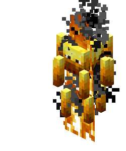 A blaze is a hostile mob that spawns in nether fortresses and is the only source of blaze rods. Blazes attack at range by firing a trio of fireballs or can attack the player that gets too close to them with their spinning rods.[1]