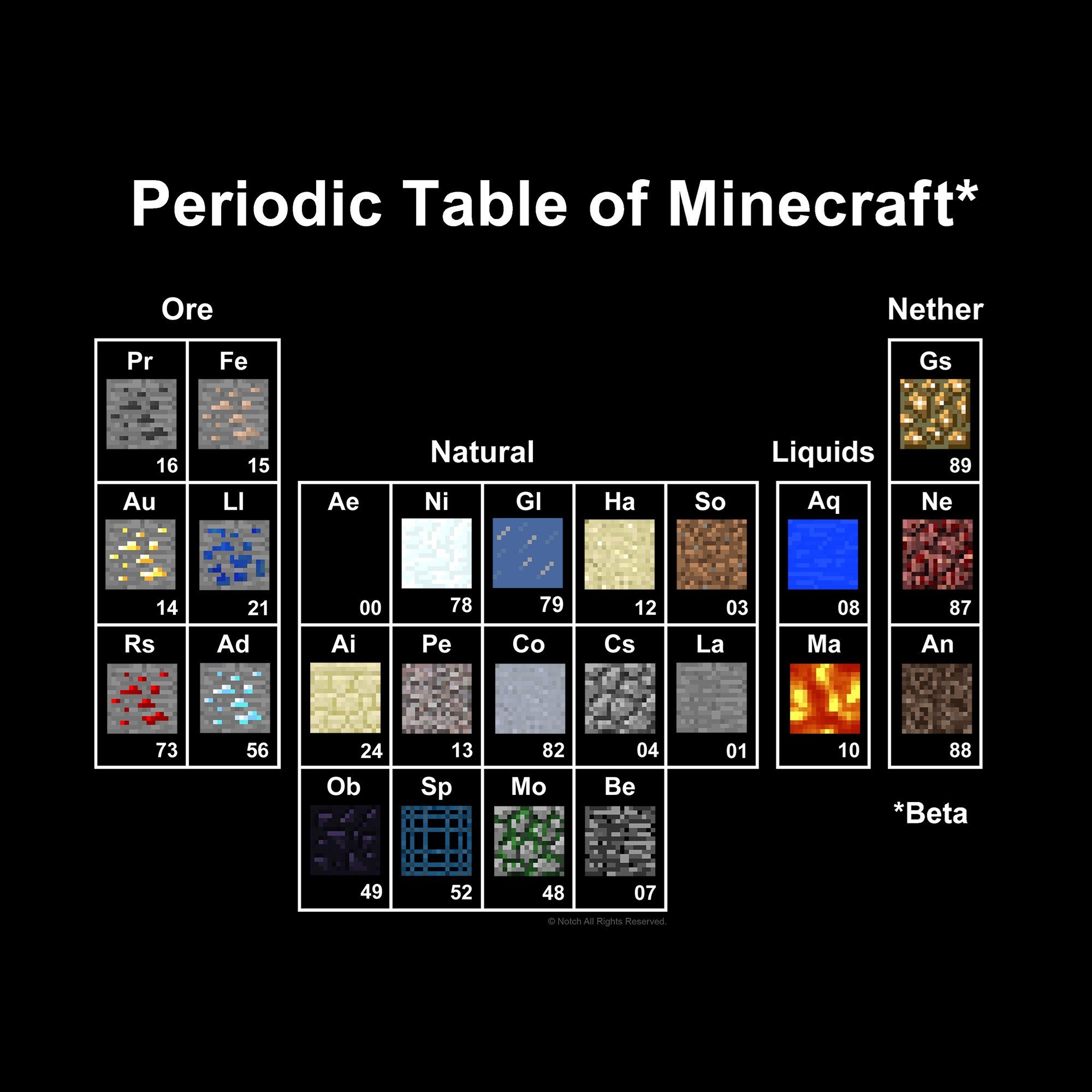 Official T-shirt artwork "Periodic Table" featuring blocks (beta version), made by JINX.