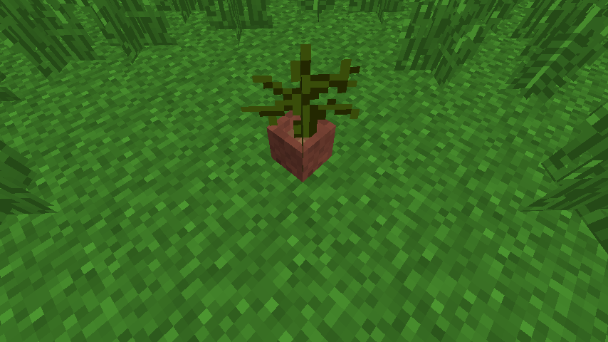 Potted grass and green shrubs existed from 13w36a to 14w11b, whereas potted grass blocks existed from 14w06a to 14w11b.