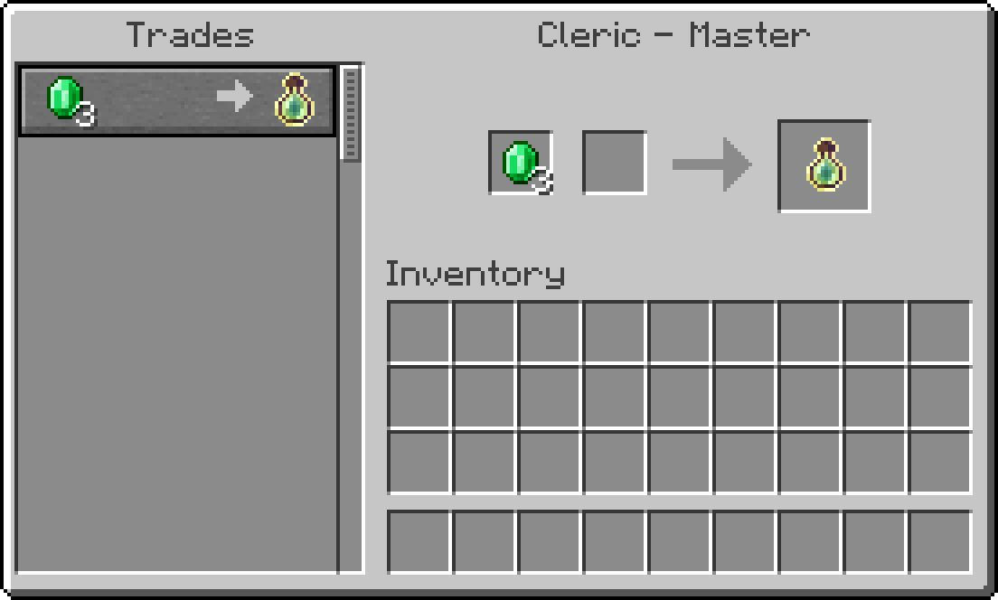 Master-level cleric villagers sell bottles o' enchanting for 3 emeralds as part of their trade.