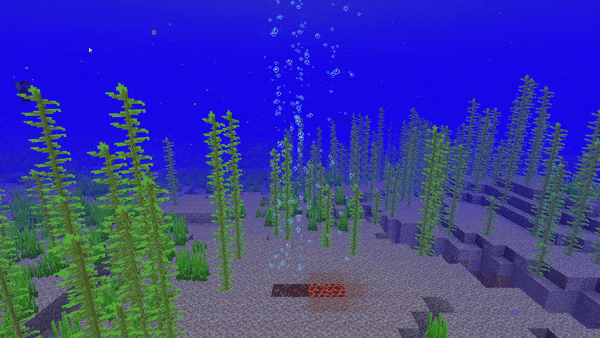 Bubble columns created by placing magma blocks under water.