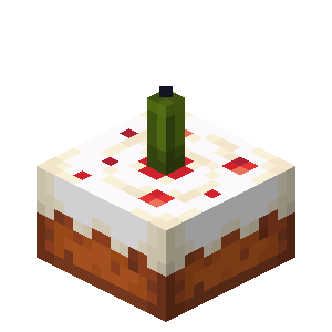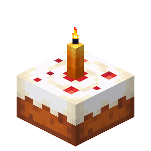 - On May 17, 2019, for the 10th anniversary of Minecraft, the cake model was changed to display a "10" above it, made of white concrete.