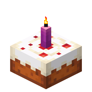 | Cake with Purple Candle | purple_candle_cake | Block | candle_cakes | block.minecraft.purple_candle_cake |