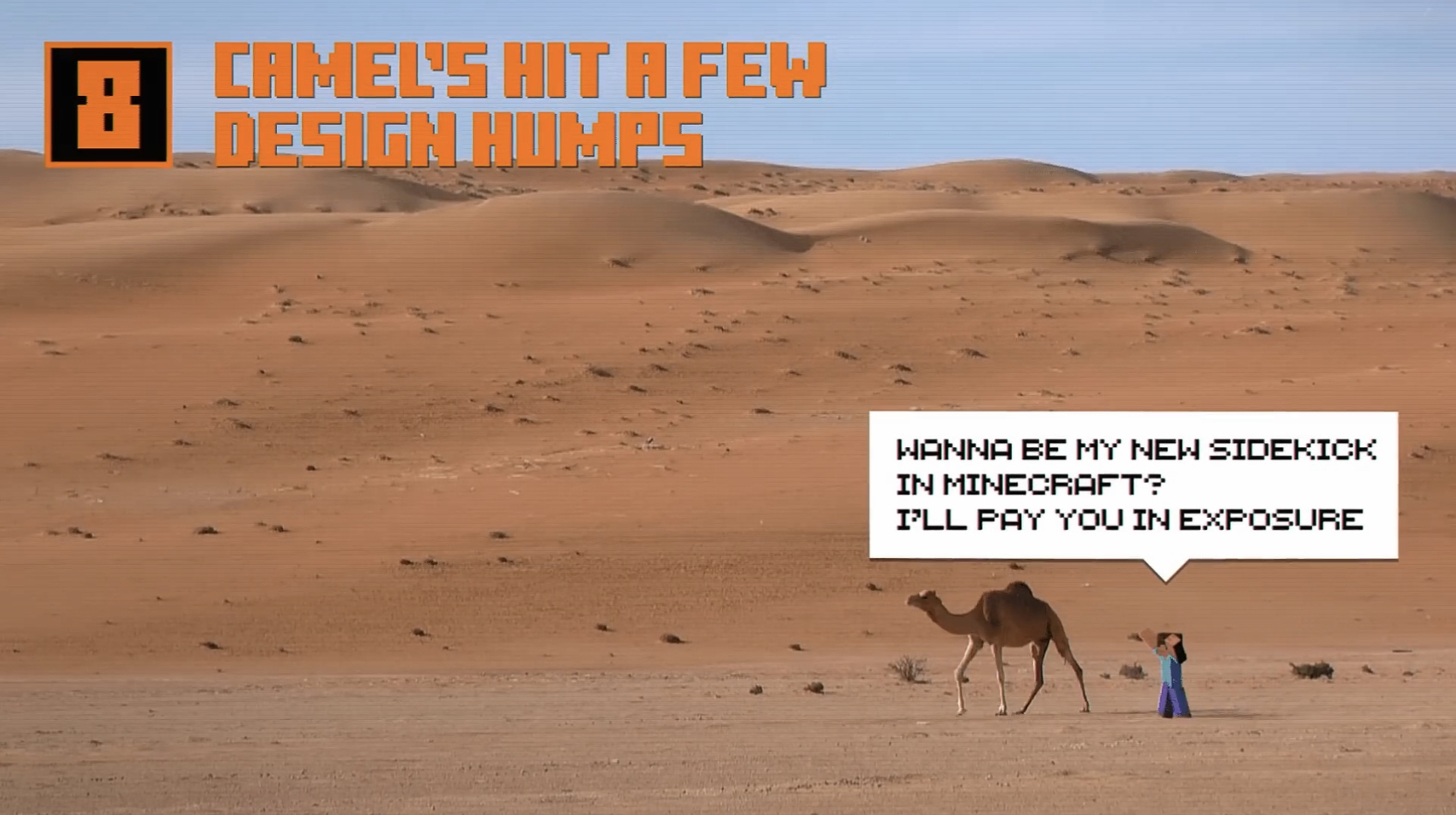 - Minecraft camels are specifically based on the one-humped dromedary camel, though the first model was based on the two-humped Bactrian camel.[11]