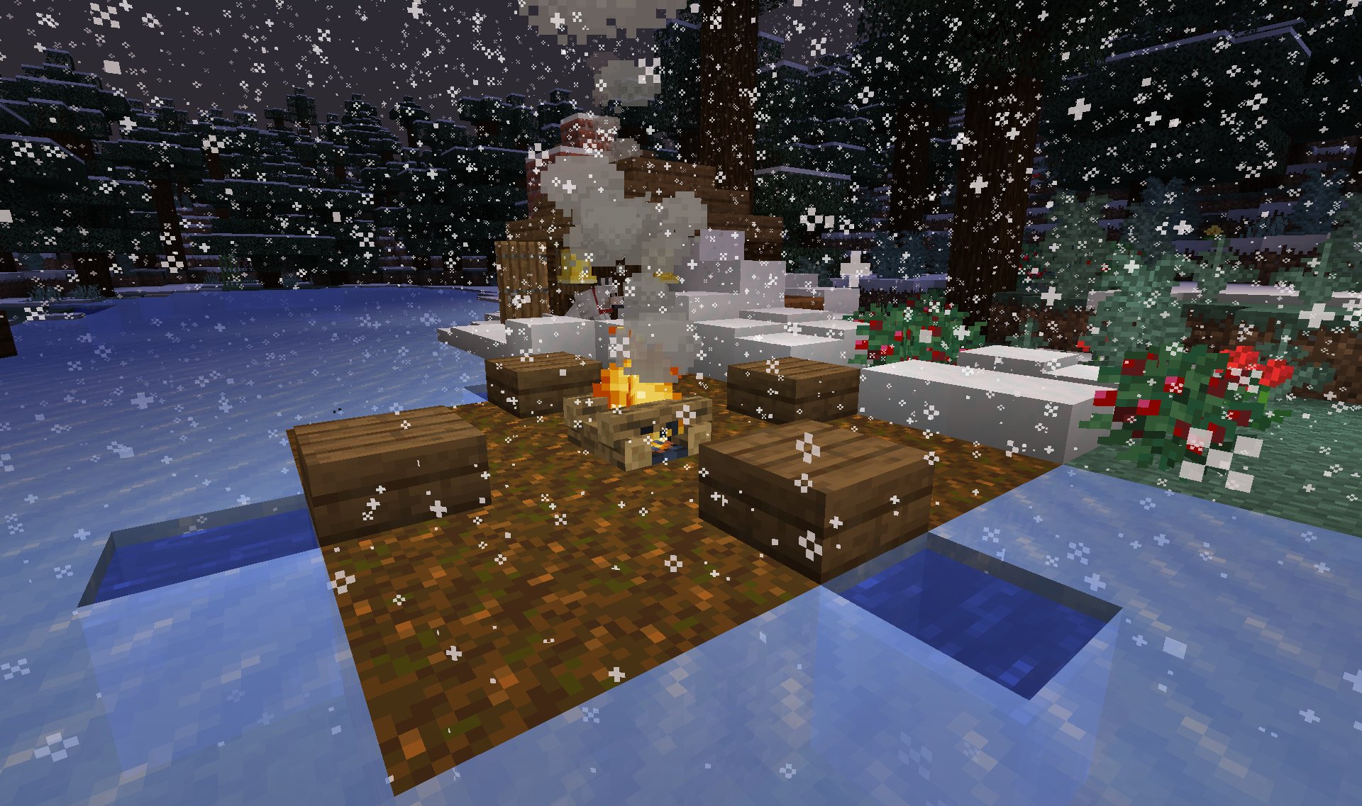 Campfires can generate in taiga and snowy taiga[Bedrock Edition only] villages.