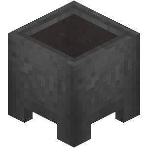 A cauldron is a block that can contain water, lava or powder snow and, in certain situations, collect it from the environment. In Bedrock Edition, it can also hold potions or dyed water. It also serves as a leatherworker's job site block.