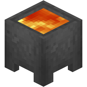 A cauldron placed below a down-facing pointed dripstone that has lava placed a block above it slowly fills with lava.