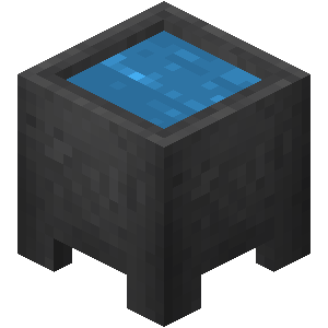 A cauldron can be filled with water by using a water bucket on the cauldron. Once completely filled, a cauldron can be used to fill a water bucket by using an empty bucket on the cauldron; this empties the cauldron. Despite containing water, using a fish bucket on a cauldron does not fill it with water, but places water against it.[2]