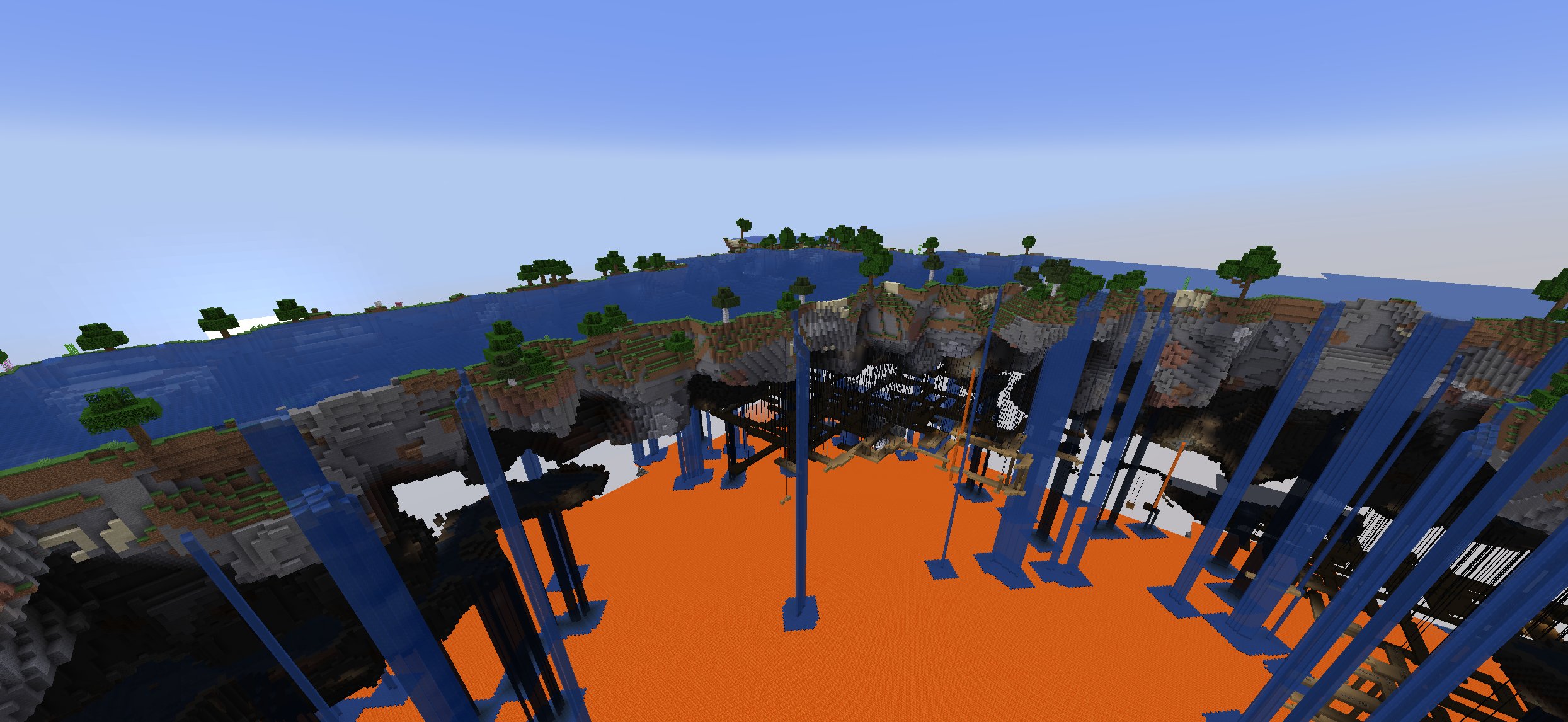 Aquifers are liquid systems used to generate bodies of liquids in a world. Almost all liquids in a world (including those in carvers, noise caves, rivers and oceans) are generated by aquifers. Aquifers may create underground liquid bodies that look like lakes, as well as water or lava waterfalls. Note that lava lakes are also generated underground, but they're not aquifers.