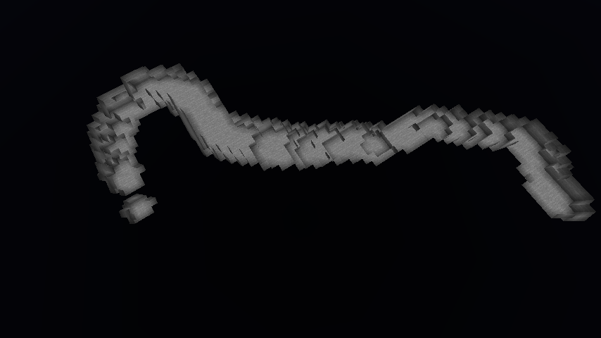 Noodle caves are a thinner and squigglier variant of spaghetti caves. They consist of tunnels usually 1 to 5 blocks in width. When generating, the edge of black and white part of noise image becomes air, making it look like long and thin noodles.