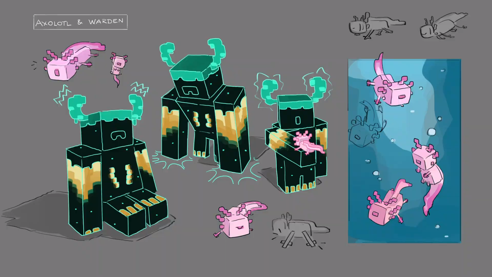 Although the axolotl is the first amphibian mob implemented into Minecraft, it was not the first announced one, since frogs were announced during the MINECON Live 2019 biome vote.